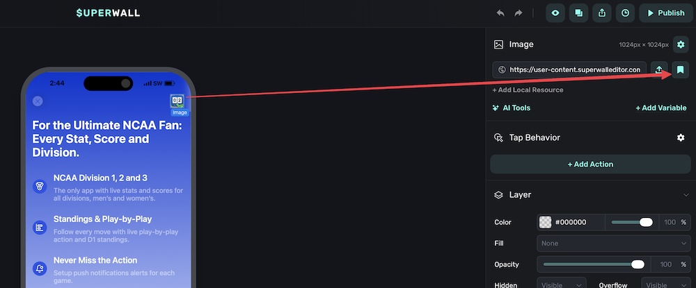 • Select a component: In the paywall editor, select an image or video component.